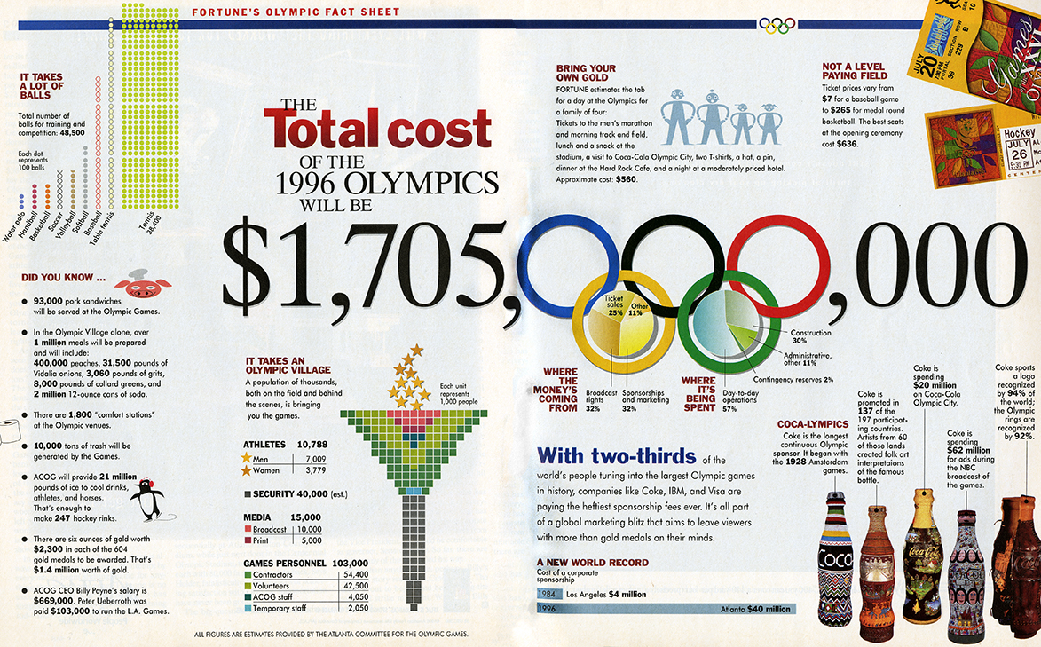 Plans to rebuild the infrastructure of key Atlanta neighborhoods meant displacing the low-income residents who had lived there for decades. Metropolitan Atlanta Rapid Transit Authority had to upgrade its entire system on a severely limited budget and prepare to move millions more riders than it was currently capable of. Months, then years, elapsed without any decisions on a strong look of the Games—how Atlanta would present itself to its visitors as a historical southern city with a majority African-American citizenship—and fears that the designs would become so abstract that any idea of Atlanta would be hopelessly lost seemed to be confirmed with the debut of the Summer Games’ mascot, an amorphous little creature called Whatizit. To make matters even more challenging, a hosting site in Cobb County faced massive protests from the queer community over its prejudiced antigay legislation. And a bomb detonated in the middle of the night halfway through the Games, killing two people and triggering a frenzied, months-long media harassment of an innocent man.