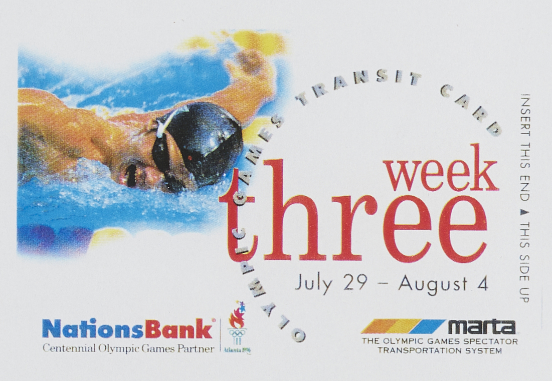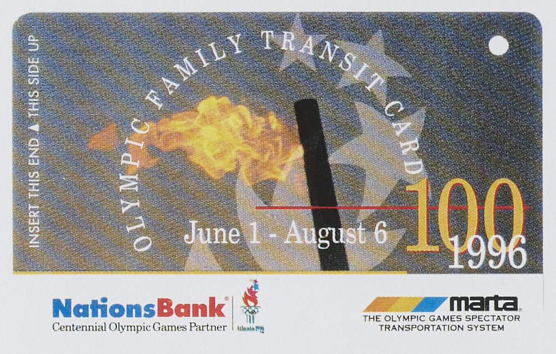 This was a bit of a hopeful exaggeration. By the early nineties, MARTA had 667 buses servicing 150 routes and 240 rail cars running on 39 miles of track: a decent fleet for a modest ridership but nowhere near enough machinery or personnel to handle the millions of international tourists who would descend on the city in the summer of ’96. But more troublesome than MARTA’s size was its financial state. Since its inception, MARTA had never been adopted by neighboring Cobb and Gwinnett Counties—both started their own systems rather than interact with metropolitan Atlantans—and had never received any state funding. As the state legislature increasingly favored highway expansion, the inner-city transportation system struggled to pay for its own development, maintenance, and employees from a budget funded only by fares and a 1% sales tax in Fulton and DeKalb. But when Atlanta won the Olympic bid, MARTA received a sudden and temporary window for improvement. ACOG designated it as the official transportation provider of the Games, the first time an Olympic committee had bestowed such a title: the “Olympic Spectator Transportation System.” And, also for the first time, the cost of public transportation would be included in the price of an Olympic ticket.